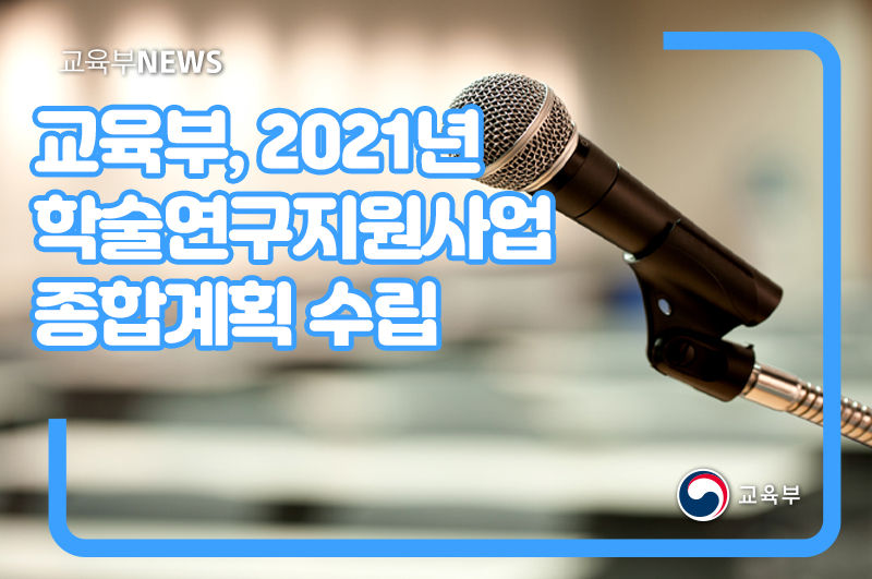 교육부(부총리 겸 교육부장관 유은혜)는 창의적 지식 창출을 견인하고 균형 있는 학문 발전을 유도하기 위한 「2021년 학술연구지원사업 종합계획」을 1월 7일(목) 발표하였다.