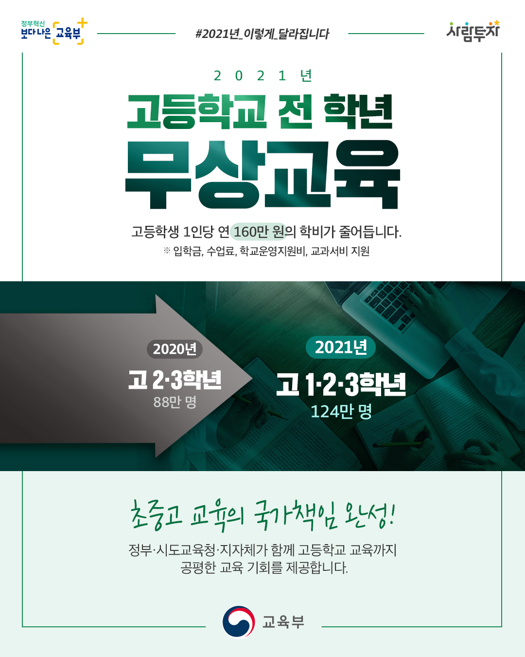 2021년 고등학교 전학년 무상교육 실시! 본문
