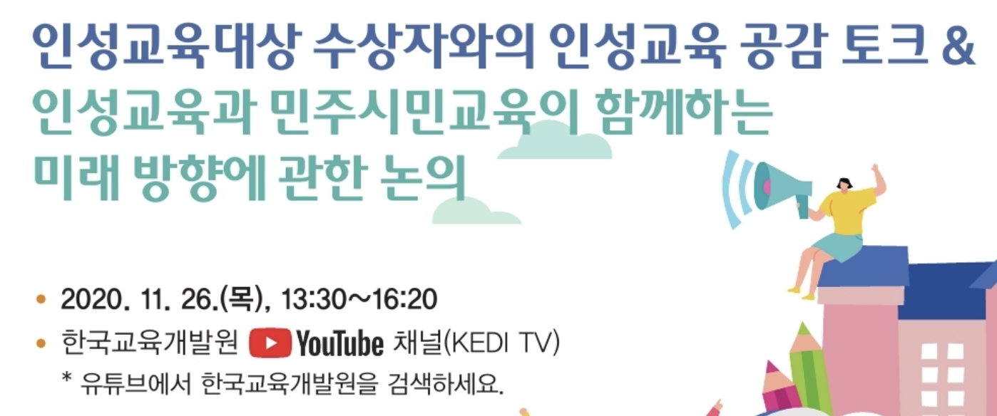‘대한민국 인성교육대상’ 행사 수상자와의 토크쇼도 진행하고 있습니다. 인성교육의 미래 방향에 관한 패널 토의를 통해 인성교육에 대해 깊이 있는 대화를 나누어볼 기회도 있습니다.