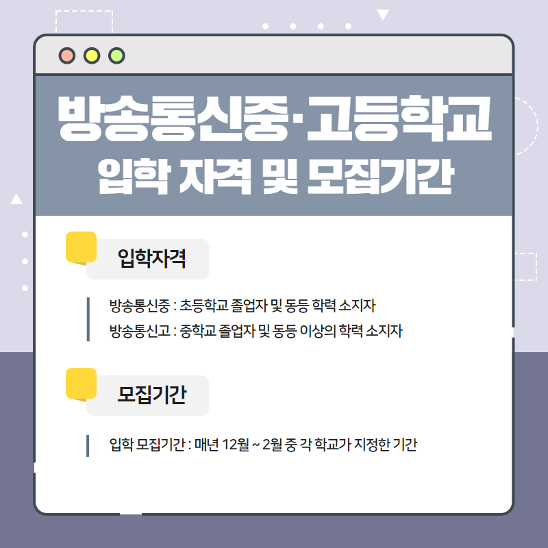 방송통신중·고등학교 입학 자격 및 입학 신청 기간은?