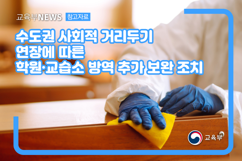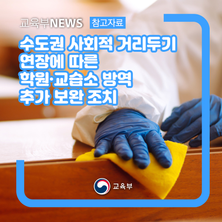 수도권 사회적 거리두기 연장에 따른 학원‧교습소 방역 추가 보완 조치 본문