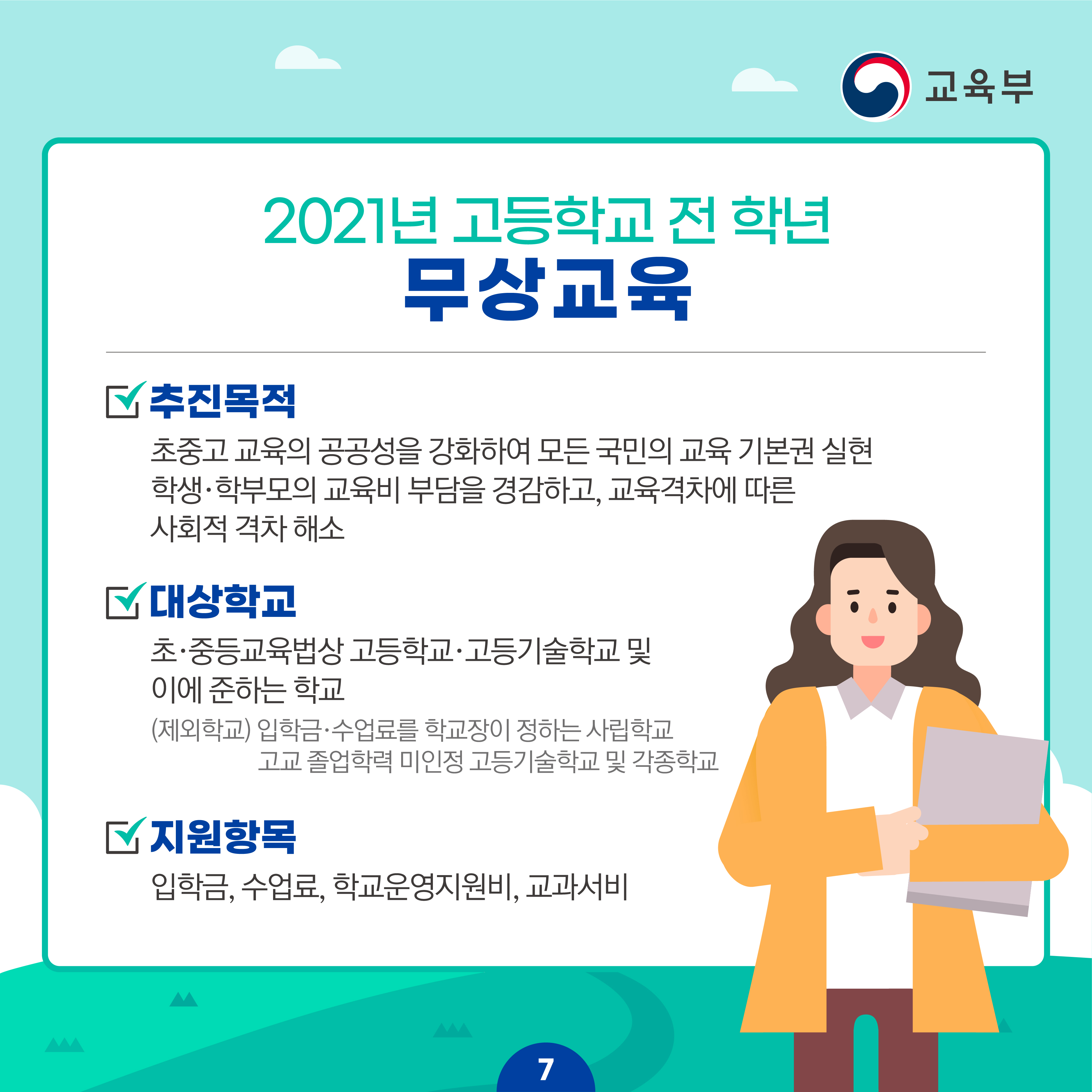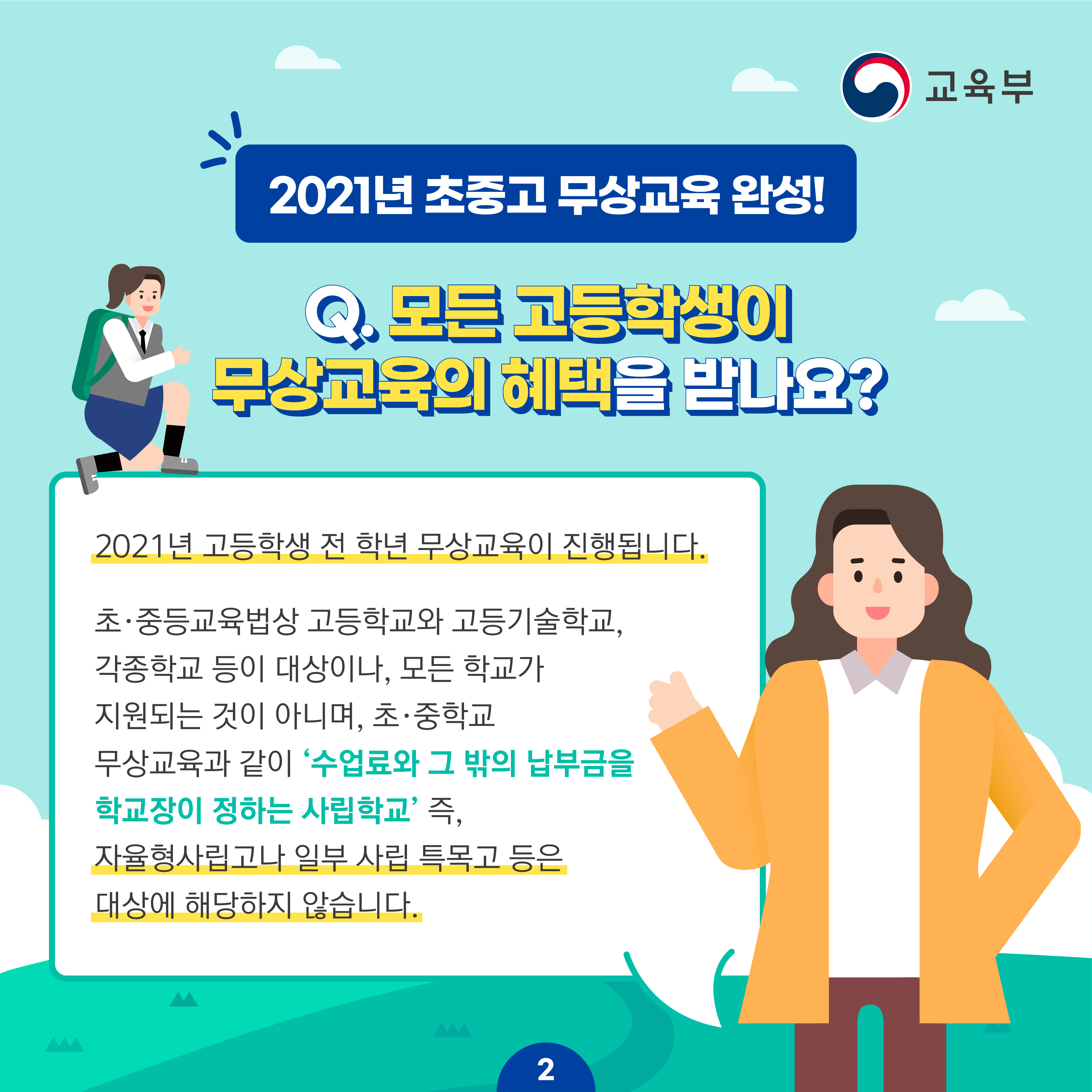 ▶ 2021년 고등학생 전 학년 무상교육이 진행됩니다.