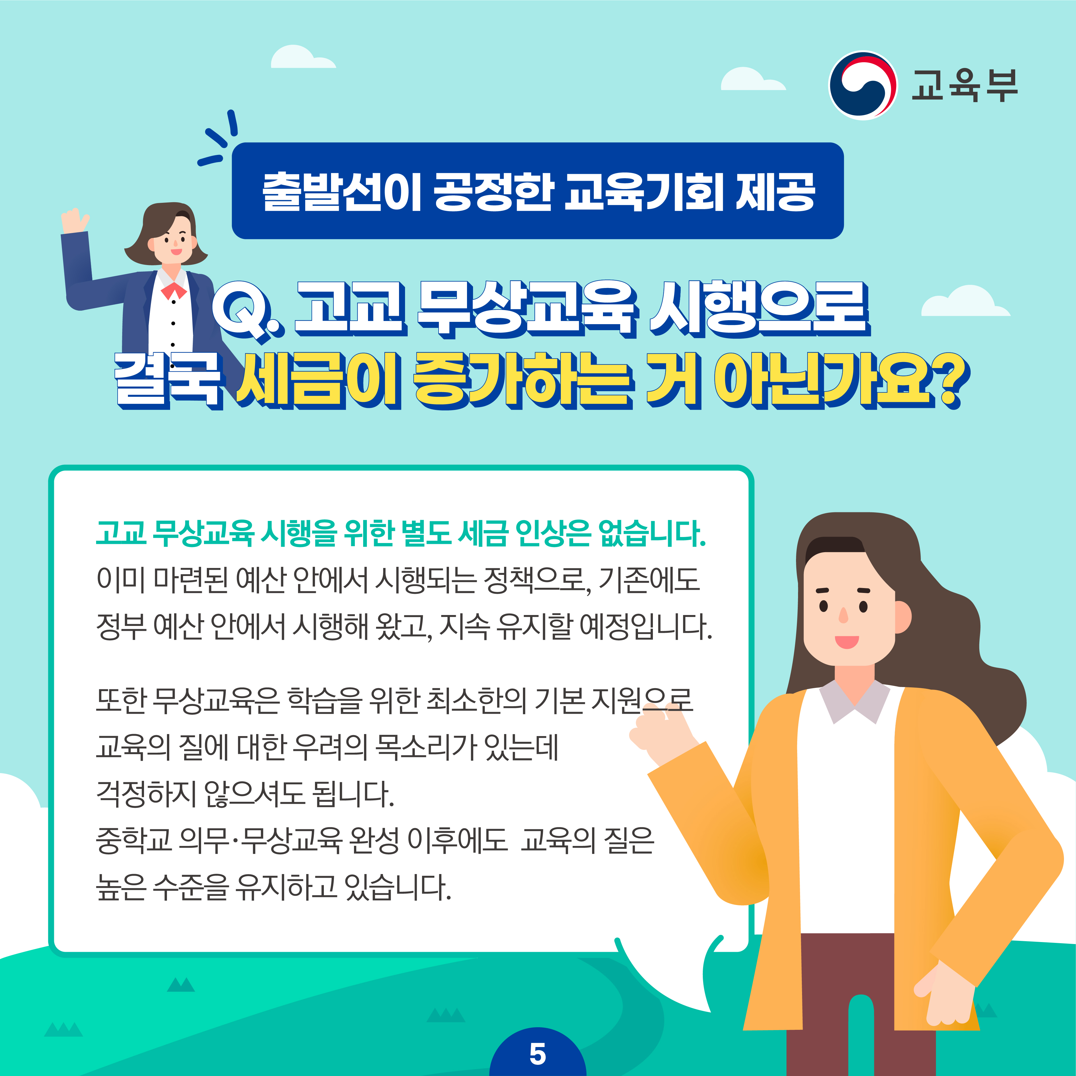 ▶ 고교 무상교육 시행을 위한 별도 세금 인상은 없습니다.