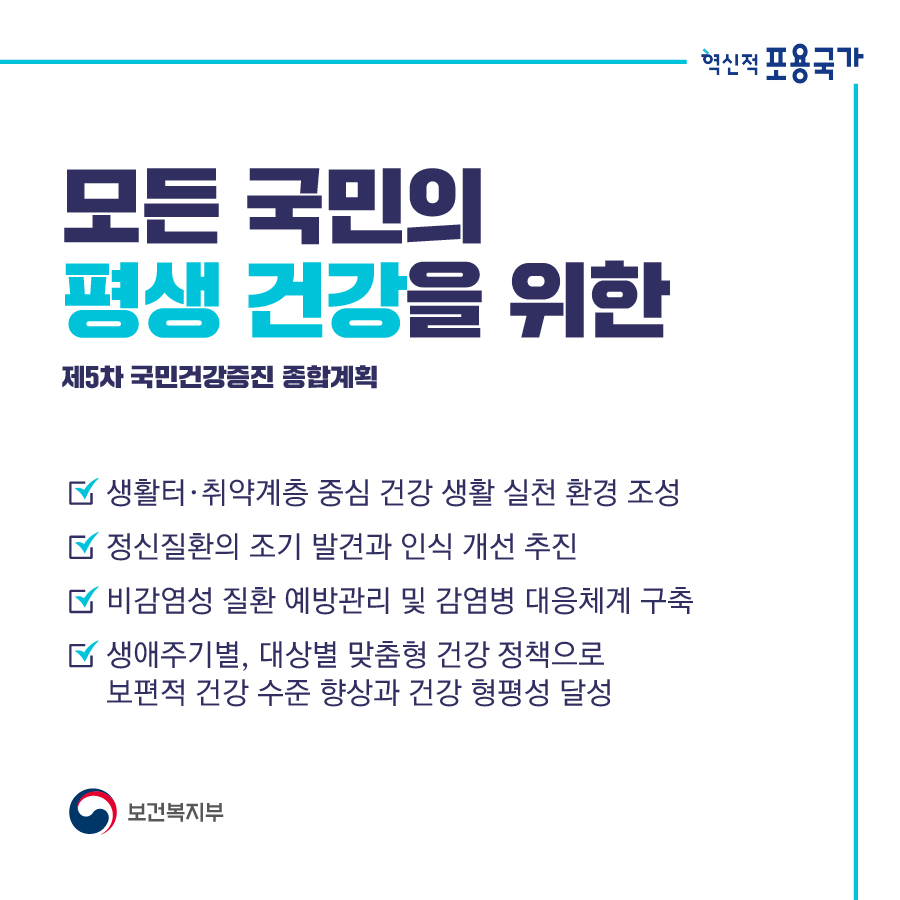 ✔ 모든 국민의 평생 건강을 위한 「제 5차 국민건강증진 종합계획」