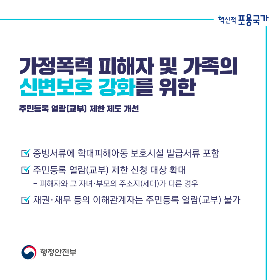 □ 주민등록 열람(교부) 제한 신청 대상 확대