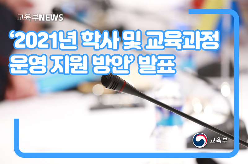 교육부(부총리 겸 교육부장관 유은혜)와 전국시도교육감협의회(회장 최교진)는 2021년 코로나19 상황에 대비하여 방역당국과의 협의를 통해 마련한 ‘2021년 학사 및 교육과정 운영 지원 방안’을 1월 28일(목)에 공동으로 발표하였다.