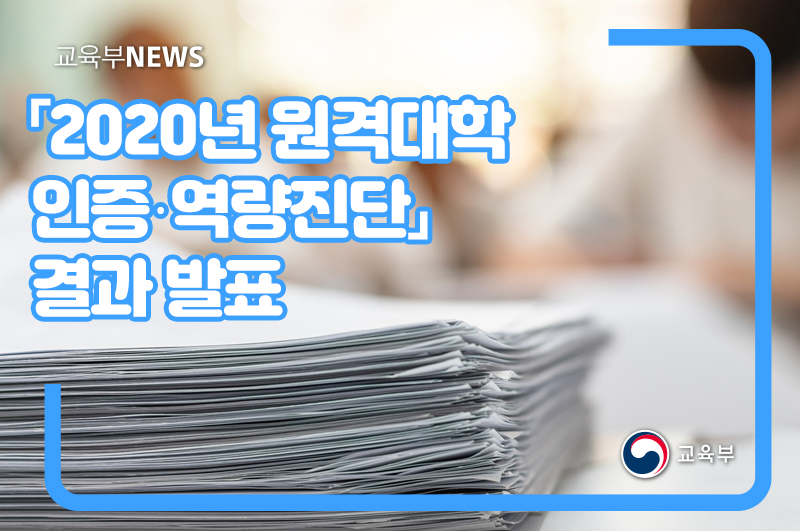 교육부(부총리 겸 교육부장관 유은혜), 한국교육학술정보원(원장 박혜자), 한국원격대학협의회(회장 김중렬)는「2020년 원격대학 인증·역량진단」(이하 ‘인증·역량진단’) 최종 결과를 1월 29일(금) 각 대학에 통보하였다.