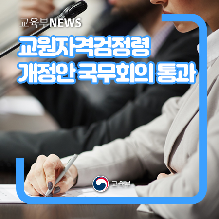 교육부(부총리 겸 교육부장관 유은혜)는 2월 2일(화) 국무회의에서 ⸢교원자격검정령⸥ 개정안을 심의‧의결했다고 밝혔다.