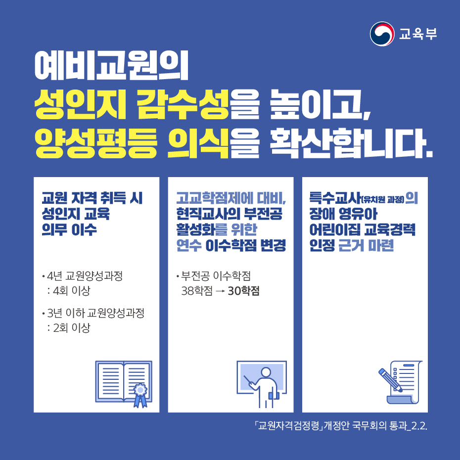 ✔ 교원 자격 취득 시 성인지 교육 의무 이수