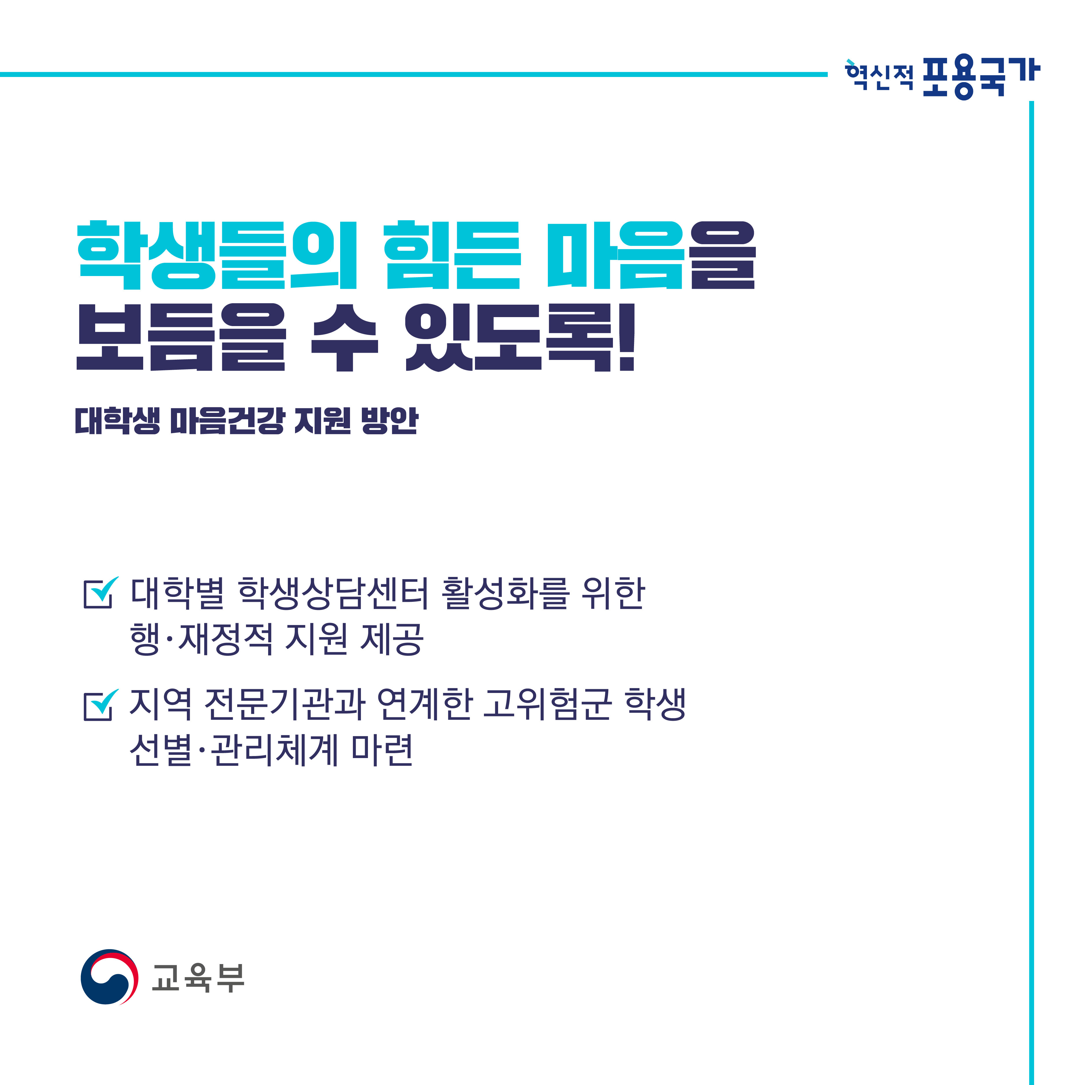 ✔ 대학생 학생상담센터 활성화를 위한 행·재정적 지원 제공