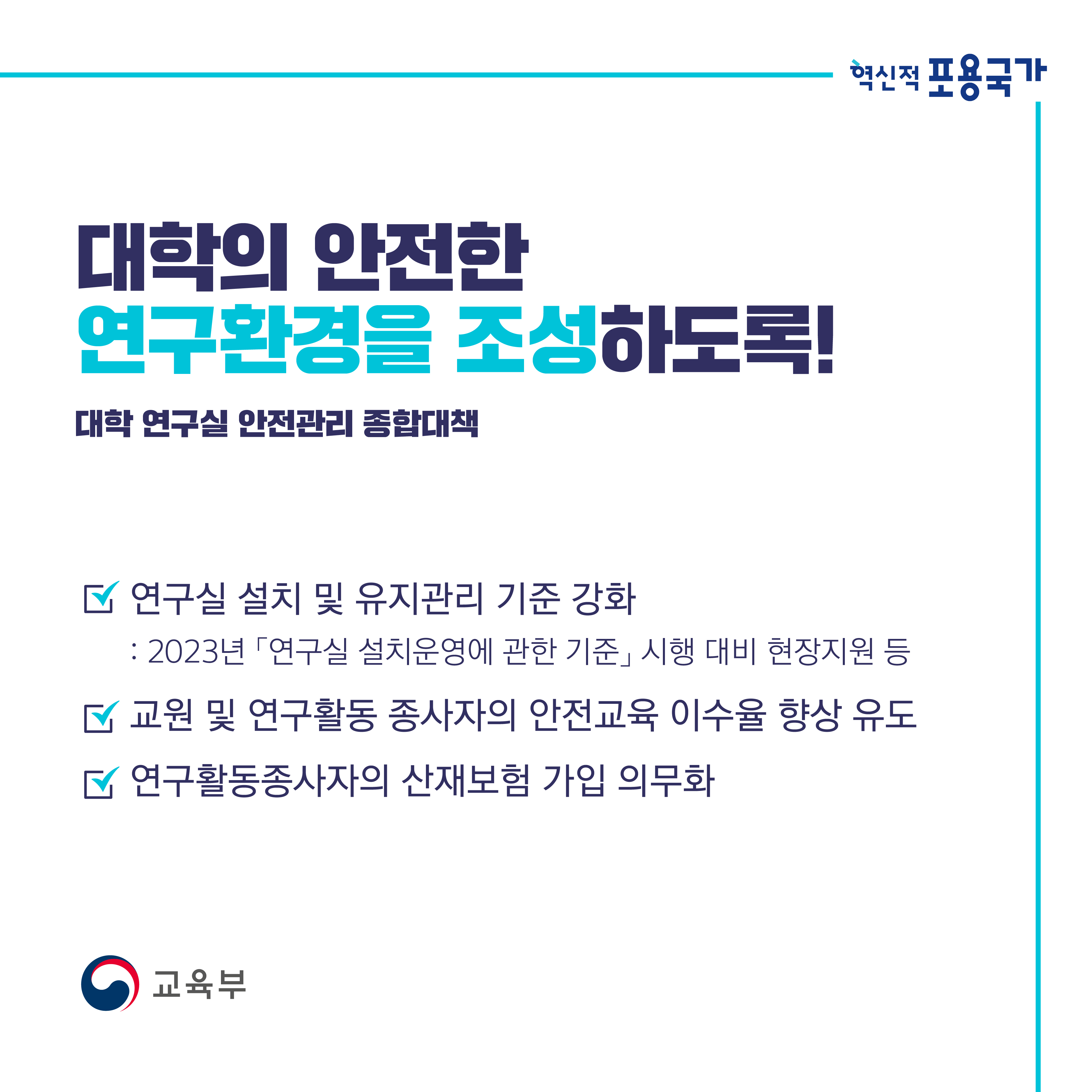 ✔ 대학의 안전한 연구환경을 조성하도록!