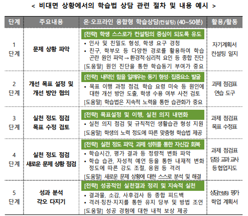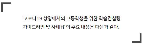 학교 일상으로의 회복 지원, “선생님은 다 계획이 있으셨군요!” - 코로나19 상황, 고교생 맞춤형 학습지도를 위한 학습상담 지침 및 사례집 제작․보급 -