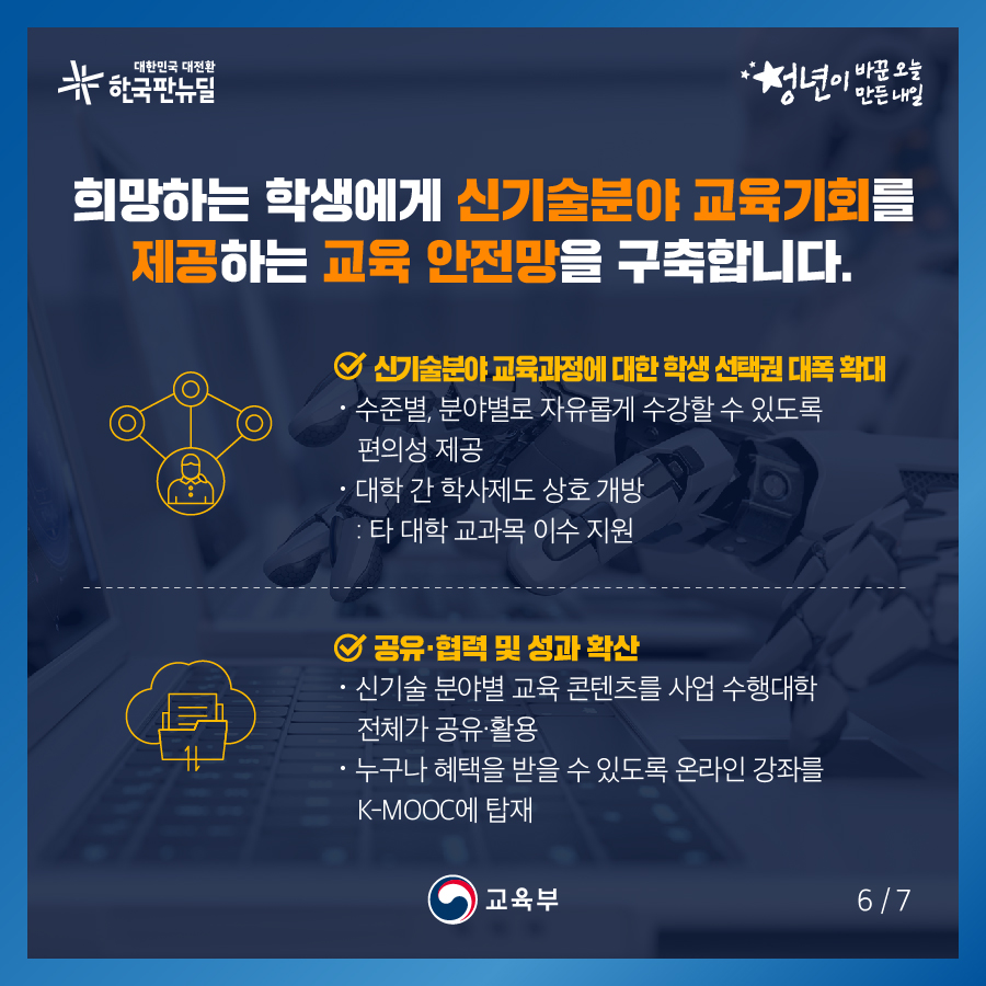 희망하는 학생에게 신기술분야 교육기회를 제공하는 교육 안전망을 구축합니다.