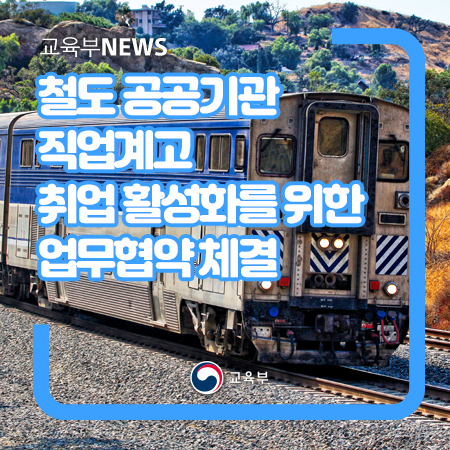 교육부(사회부총리 겸 교육부장관 유은혜)는 3월 9일(화), 중앙취업지원센터(세종특별자치시 소재)에서 한국철도공사(사장 손병석), 국가철도공단(이사장 김한영), 한국장학재단(이사장 이정우)과 철도 분야 공공기관 직업계고 취업 활성화를 위한 업무협약을 체결한다.