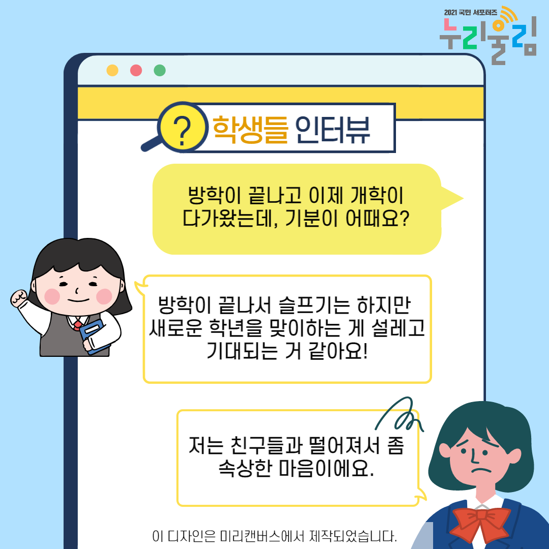 ※ 위 기사는 2021 교육부 국민 서포터즈의 의견으로 작성되었습니다.