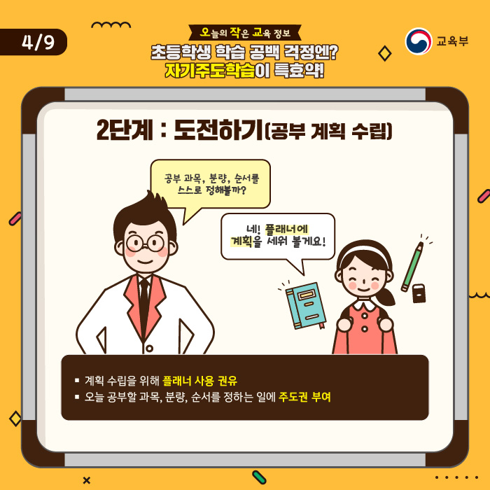 "공부 과목, 분량, 순서를 스스로 정해볼까?"