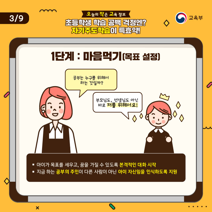 ✔ 지금 하는 공부의 주인이 다른 사람이 아닌 아이 자신임을 인식하도록 지원