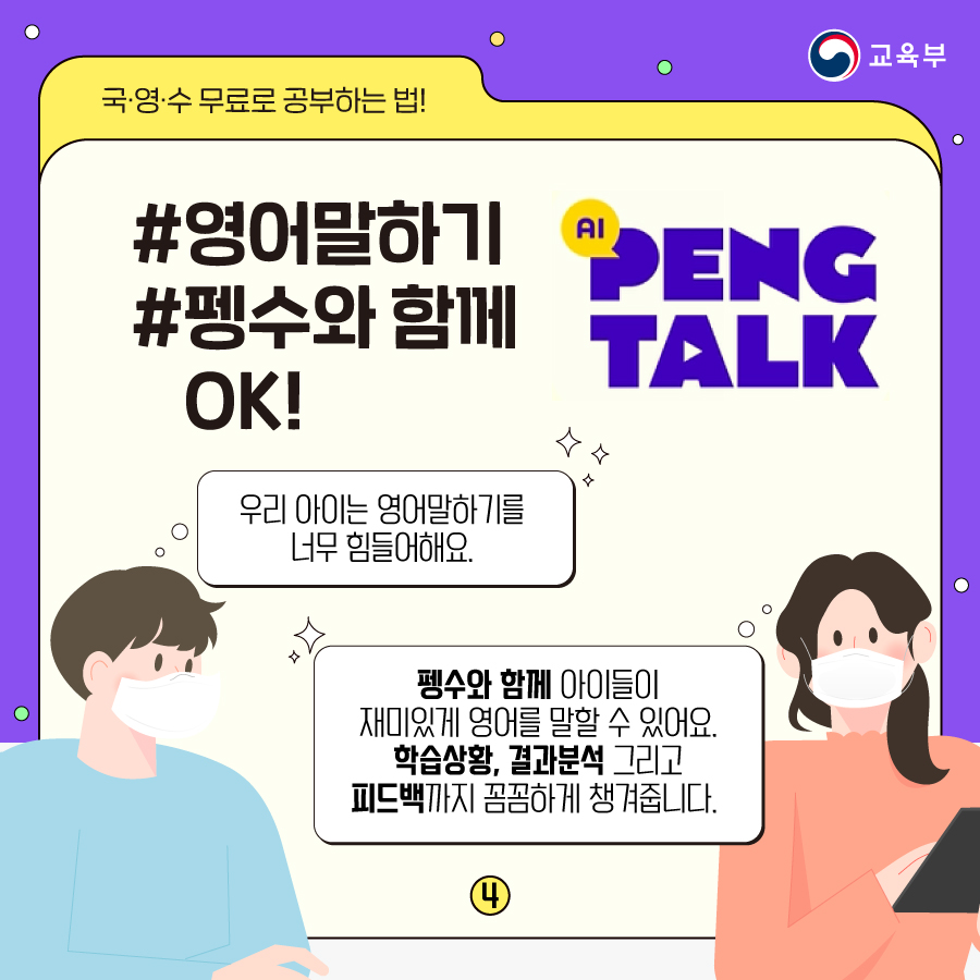 ▶ 펭수와 함께 아이들이 재미있게 영어를 말할 수 있어요. 학습상황, 결과분석 그리고 피드백까지 꼼꼼하게 챙겨줍니다.