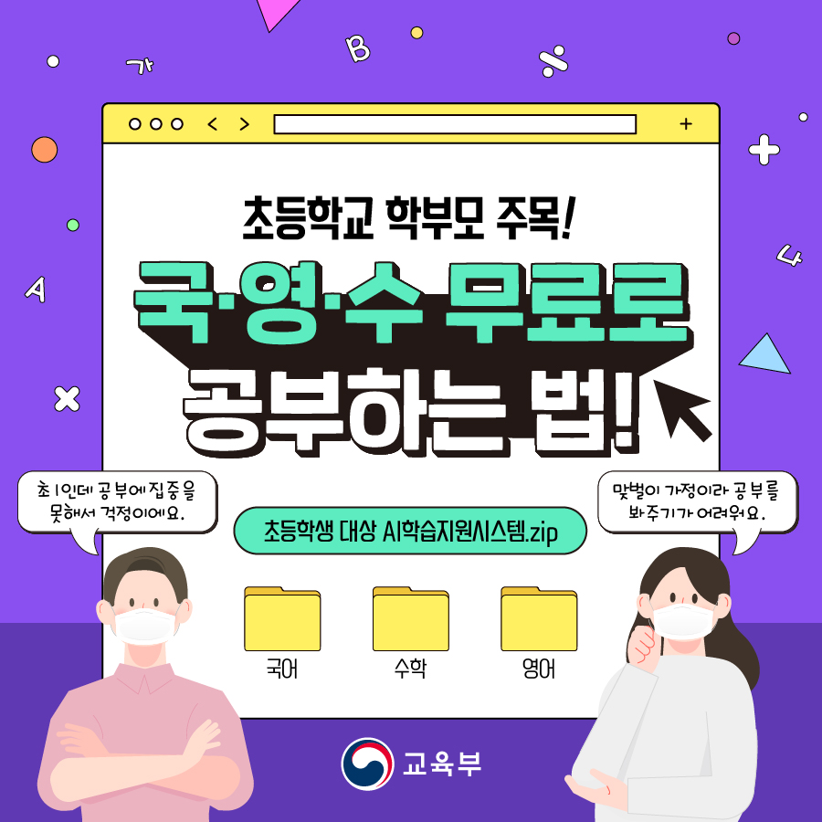 👨 🦱: 맞벌이라 공부를 계속 봐줄 수가 없어요.