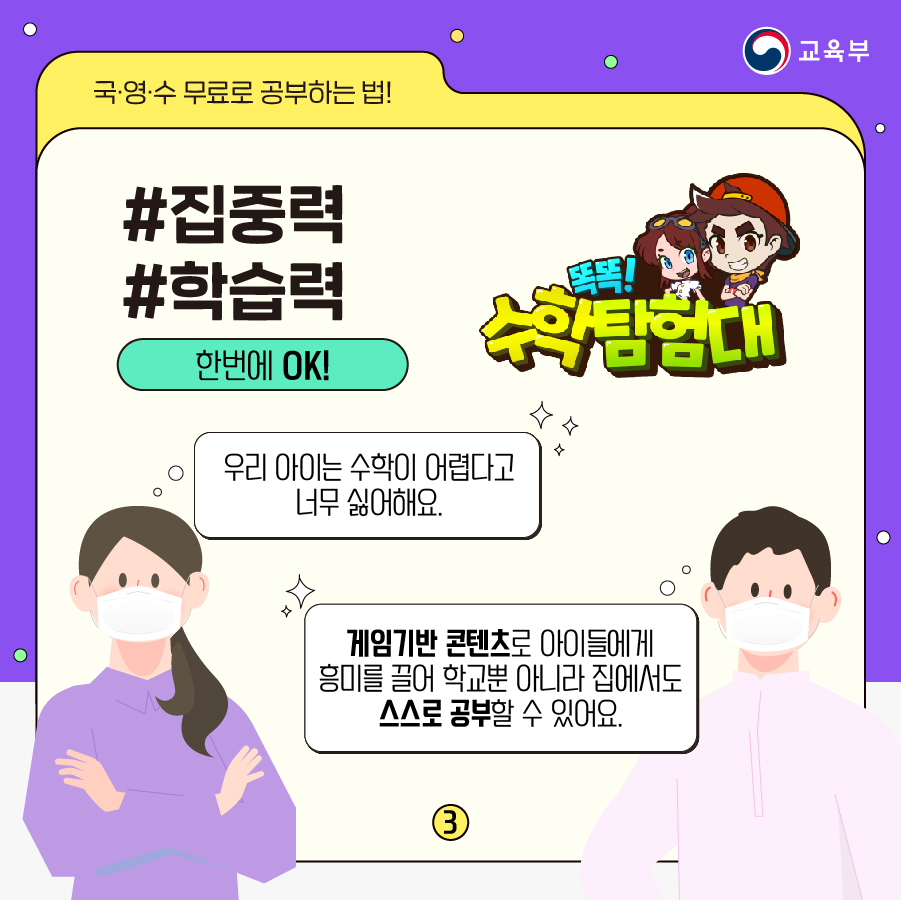 ▶ 게임기반 콘텐츠로 아이들에게 흥미를 끌어 학교뿐 아니라 집에서도 스스로 공부할 수 있어요.
