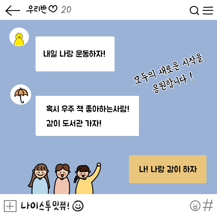 다들 만나서 반가워 “나이스 투 밋쮸”, 새 학기 친구와 친해지는 꿀팁 본문