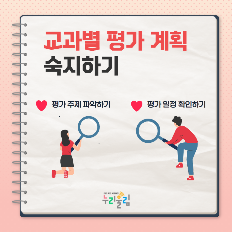 그리고 3월에 교과 선생님들이 안내하시는 교과 수업 계획과 평가 계획을 잘 숙지하세요. 대학 진학을 희망하는 학생들에게 학교생활은, 특히 학교 내신 관리는 정말 중요하답니다. 이를 위해서는 선생님들께서 안내하시는 평가 주제가 무엇인지, 언제 무엇을 평가하실 예정인지를 체크하고 일정을 참고하시면 좋습니다. 고등학교 생활은 빠르게 진행됩니다. 중간고사가 끝나기가 무섭게 기말고사가 있고, 그렇게 1년이 흘러갑니다. 그래서 미리 일정을 참고하여 자신만의 학업 계획을 작성하는 것이 좋답니다.