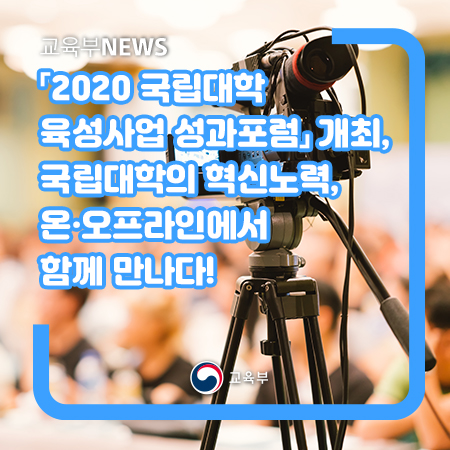 교육부(부총리 겸 교육부장관 유은혜)와 국립대학 육성사업 발전협의회(회장 이영석, 주최)는 ‘2020 국립대학 육성사업 성과포럼’을 온·오프라인 통합 형태로 3월 25일(목)에 개최하였다.