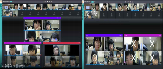 실제로 교실온닷을 통해 학생들이 토론하는 장면입니다. 토론을 진행하신 김지애 교사는 “교실온닷의 그룹토의 기능을 활용하여 모든 그룹의 마이크를 켜 놓으면, 모둠 안에서 각각 어떤 내용의 토의가 이루어지는지 확인할 수 있고 즉각적인 피드백이 가능하여 모둠 활동의 효과를 극대화하는 이점을 누릴 수 있었습니다.”라고 말씀해주셨습니다. 이처럼 실제 사례를 통해 교실온닷으로 더욱더 큰 토의의 효과를 누릴 수 있다는 것을 알 수 있었습니다.