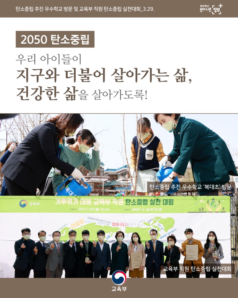 교육부 전 직원이 탄소중립 실천을 다짐하는 등