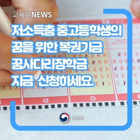 저소득층 중고등학생의 꿈을 위한 복권기금꿈사다리 장학금 지금 신청하세요. 본문