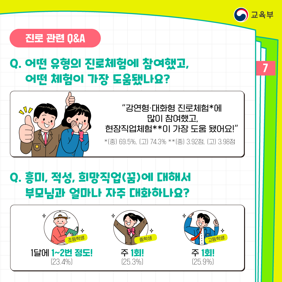 A. 강연형·대화형 진로체험*에 많이 참여했고, 현장직업체험**이 가장 도움 됐어요!