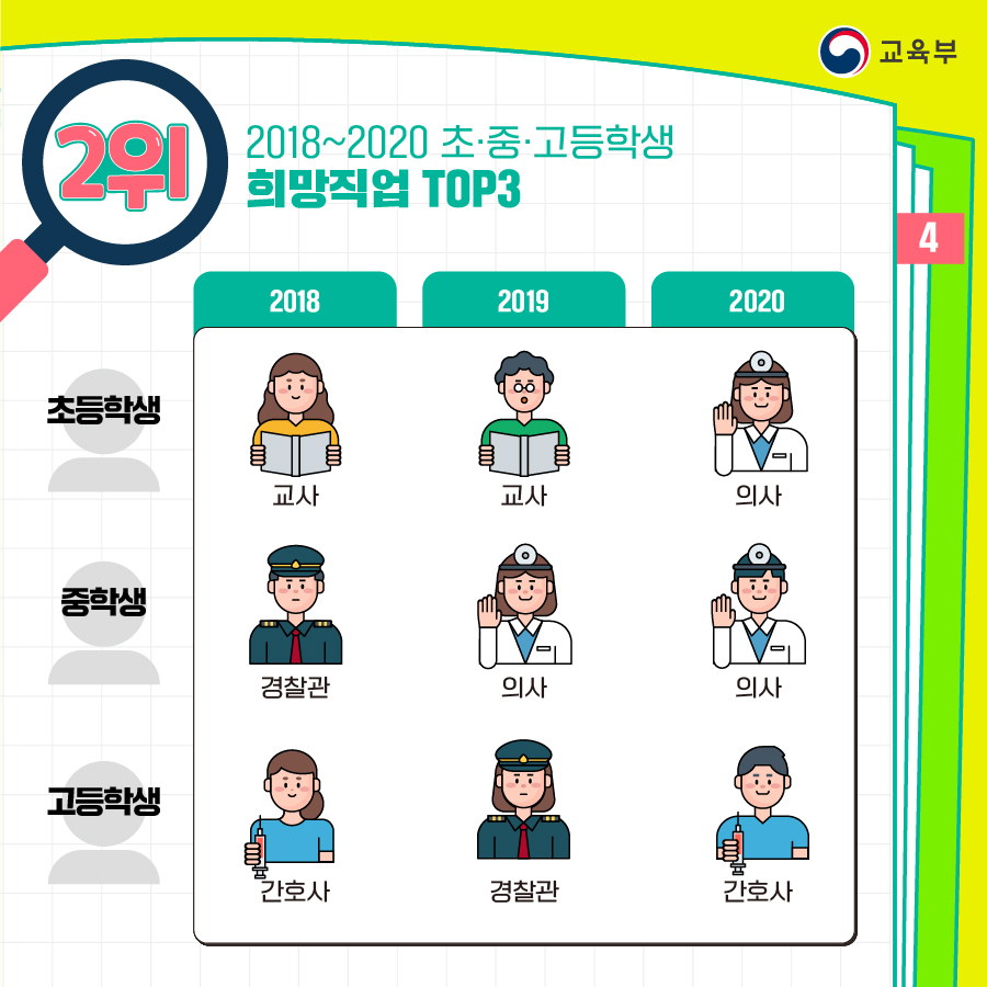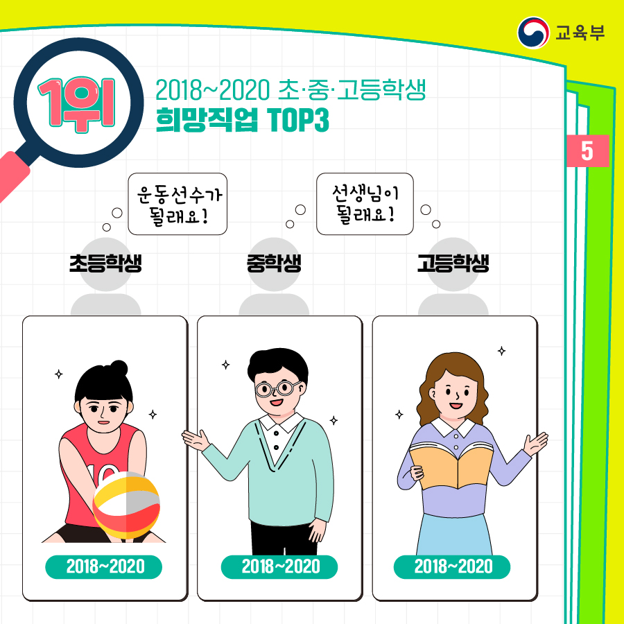 2018~2020 초·중·고등학생 희망직업 ★2위!★