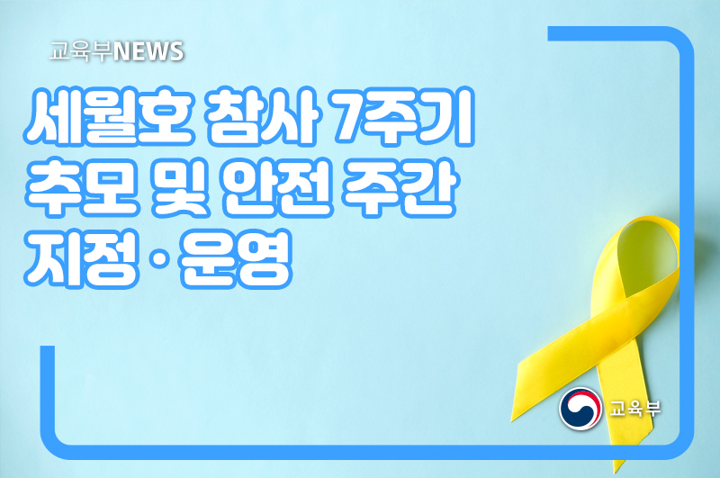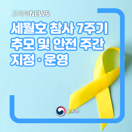 교육부(부총리 겸 교육부장관 유은혜)는 세월호 참사 7주기를 맞이하여, 희생된 학생·교사 등 모든 분을 추모하고 안전 문화를 확산하기 위하여, 추모 주간(4.12.~4.16.)을 지정하고 추모 행사를 실시할 계획이다.