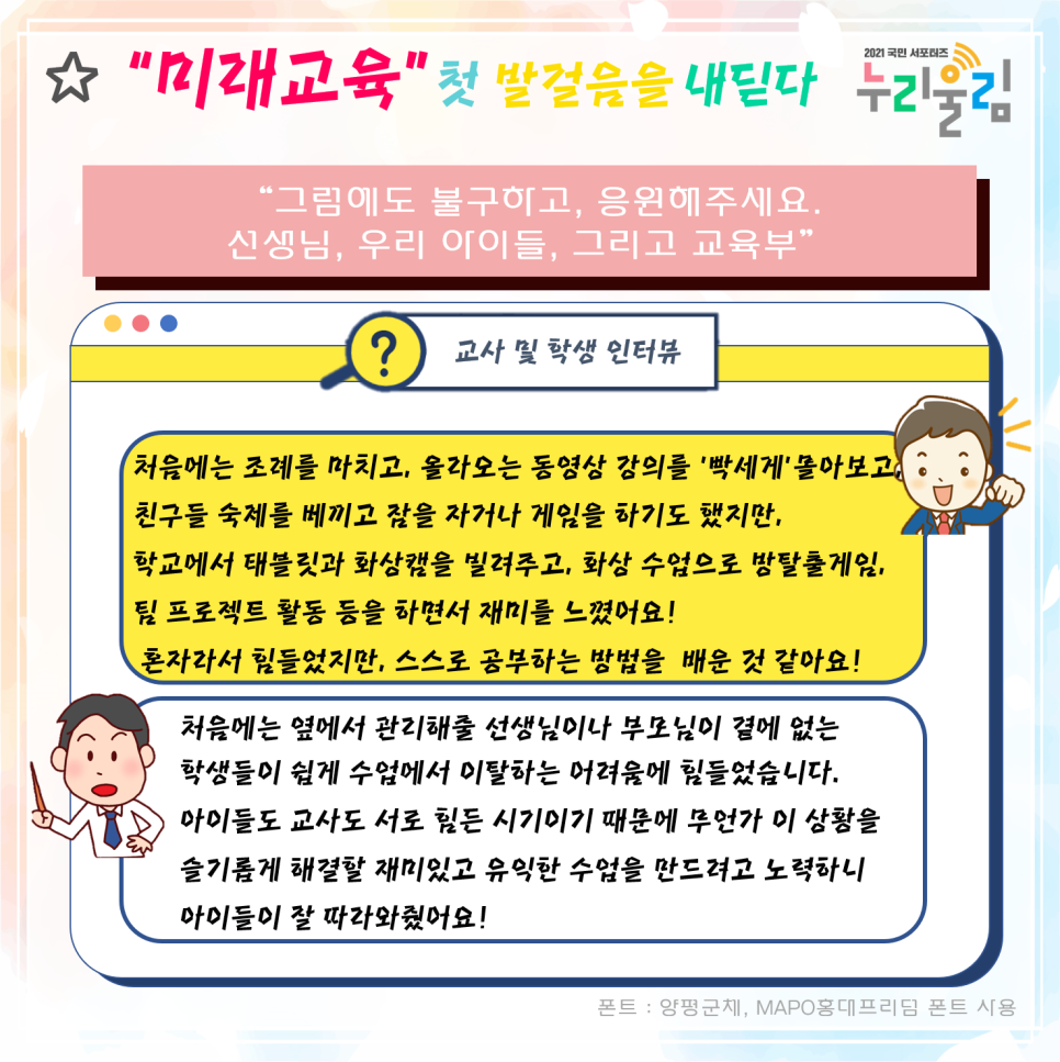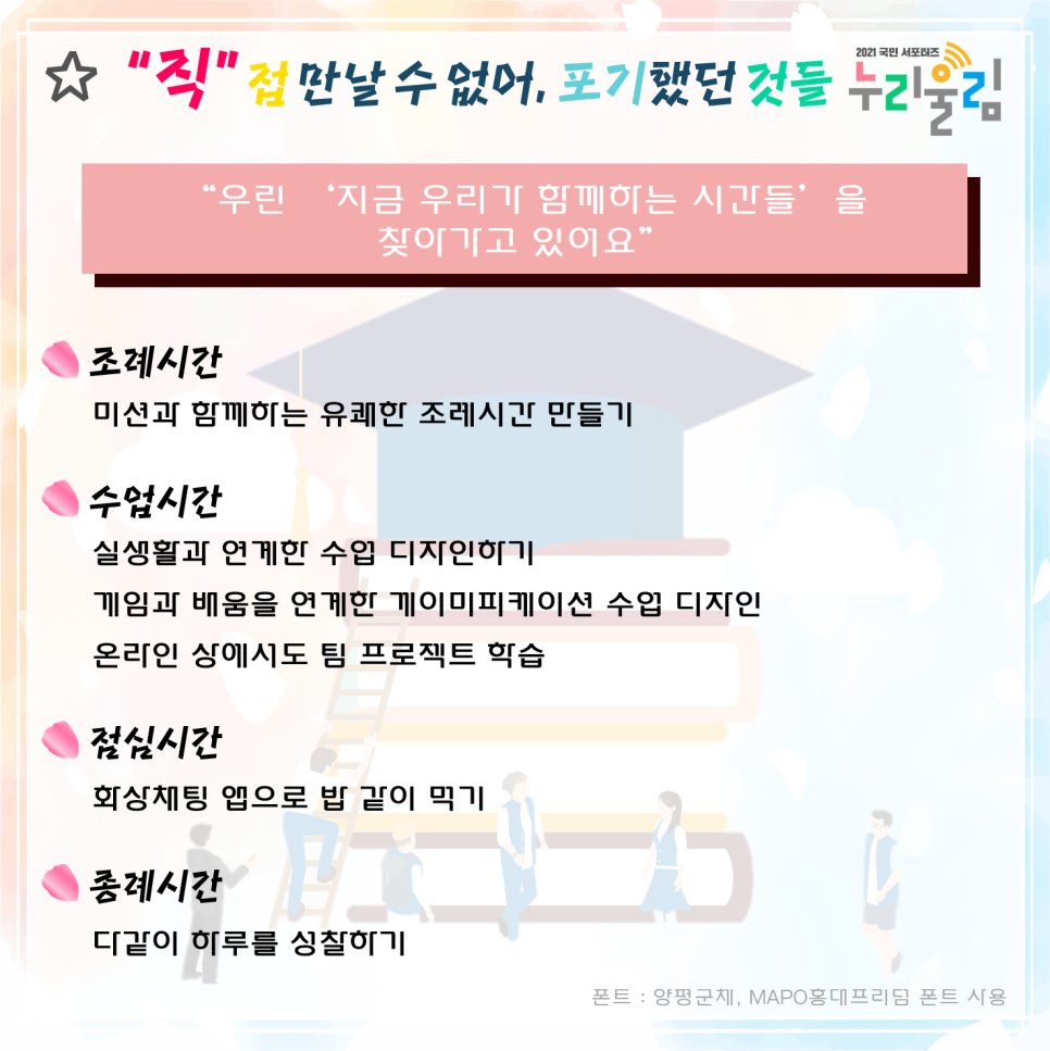 ※ 위 기사는 2021 교육부 국민 서포터즈의 의견으로 작성되었습니다.