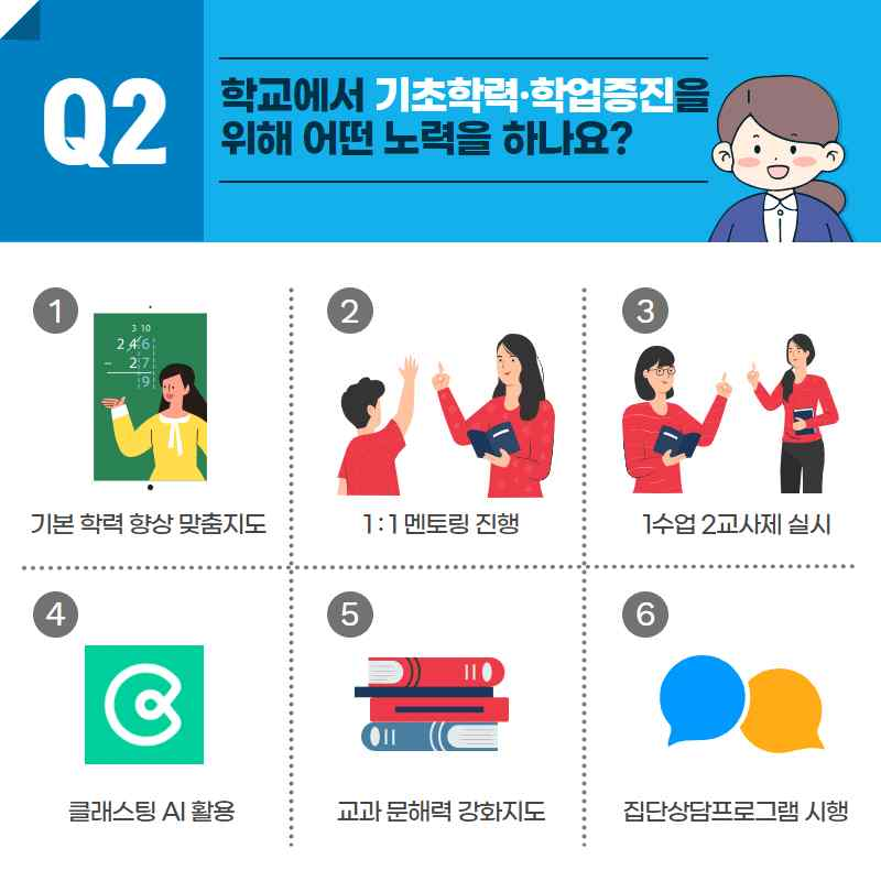 Q. 학교 측에서는 기초학력 부족 학생이나 다른 학생들의 학업 증진을 위해 어떤 프로젝트를 시행하나요?