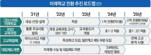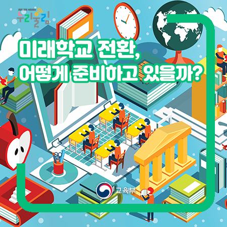 교육부는 추상적인 방안이 아닌 구체적이고 단계적으로 차근차근 전환 로드맵을 그려 시범학교나 거점 학교 운영을 통해 발생 가능성이 있는 문제에 다각적인 방법으로 접근하여 해결책을 찾고 있습니다. 이를 통해 미래를 선도하는 인재 양성을 위한 미래학교로의 전환이 점차 확대되고 있기에 기대가 됩니다. 여러분들도 앞으로 진행될 미래학교로의 전환에 많은 관심 부탁드립니다!