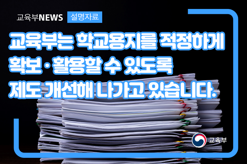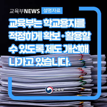 교육부는 학교용지를 적정하게 확보·활용할 수 있도록 제도 개선해 나가고 있습니다. 본문