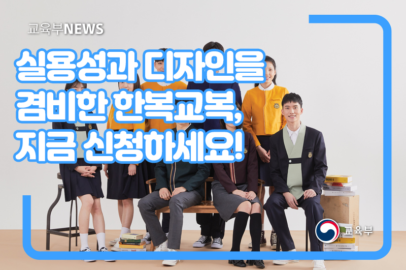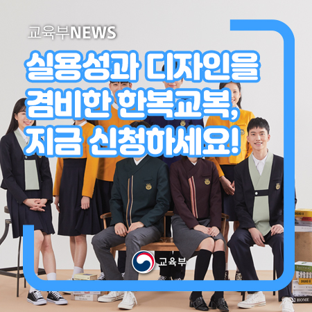 교육부(부총리 겸 교육부장관 유은혜)와 문화체육관광부(장관 황희, 이하 문체부)는 중·고등학생들이 한복에 대한 친밀감을 높이고 긍정적인 인식을 가질 수 있도록 ‘2021 한복교복 보급 사업’을 추진한다.