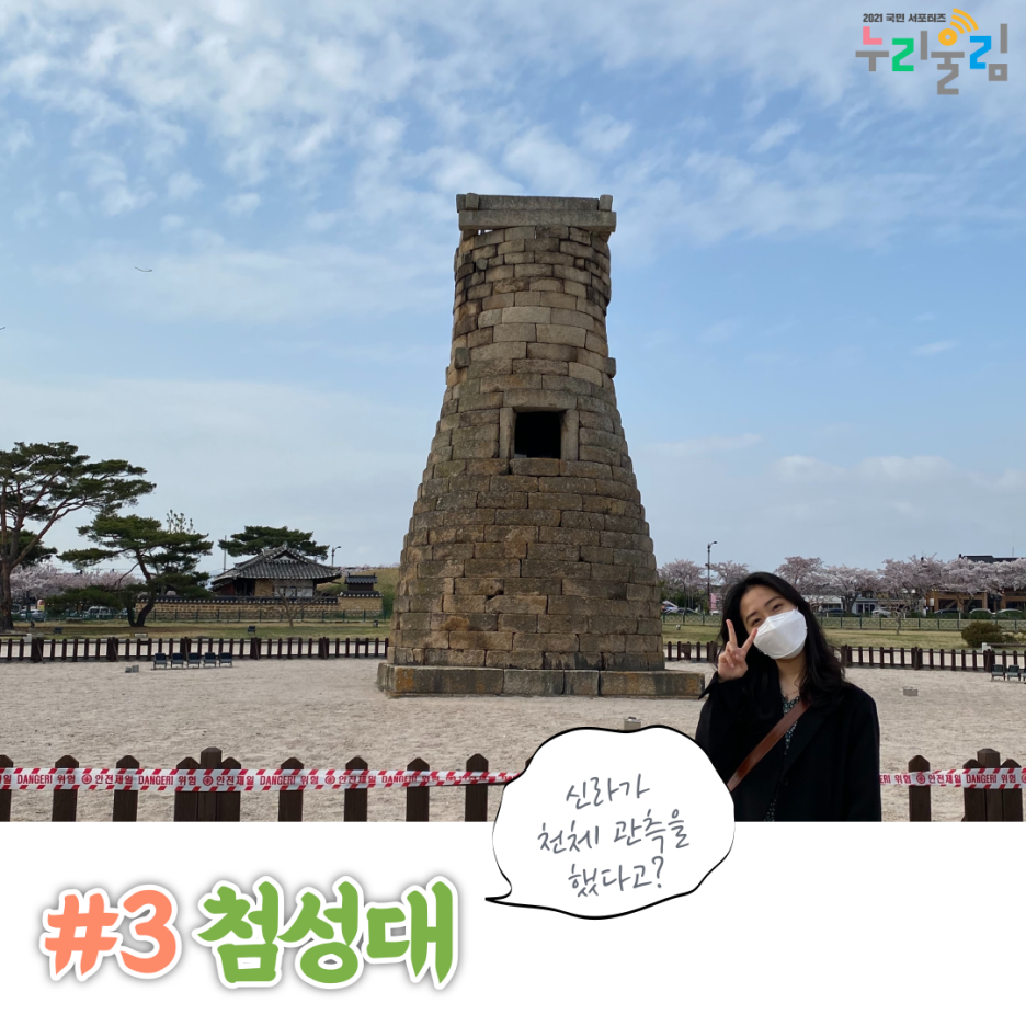 첨성대는 삼국시대 신라 시기의 천문관측시설로, 선덕여왕 때에 세워진 세계에서 현존하는 가장 오래된 천문대로 알려져 있습니다. 우리나라 국보로 지정되어 있으며, 해가 진 후에 조명이 켜졌을 때도 예뻐서 많은 사람들이 사진 명소로서도 찾는 곳이랍니다.