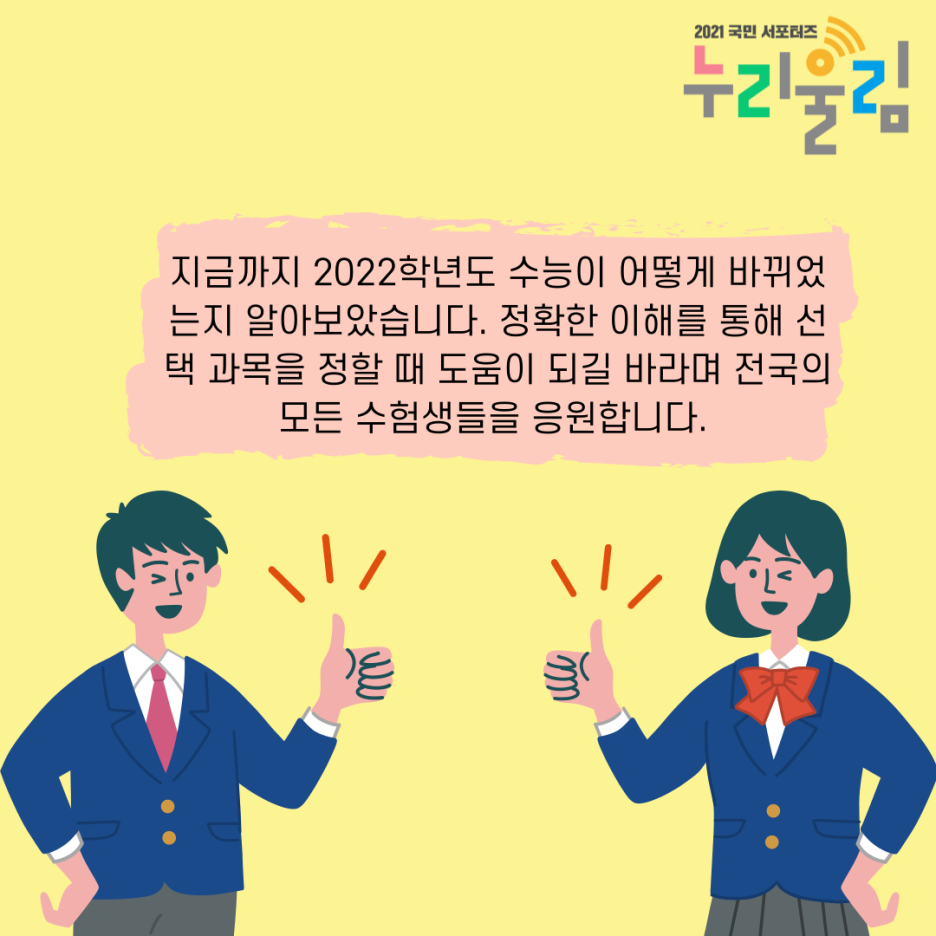 ※ 위 기사는 2021 교육부 국민 서포터즈의 의견으로 작성되었습니다.