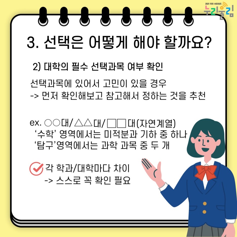 선택은 어떻게 해야 할까요? - 진학하고자 하는 대학의 필수 선택 과목 확인!
