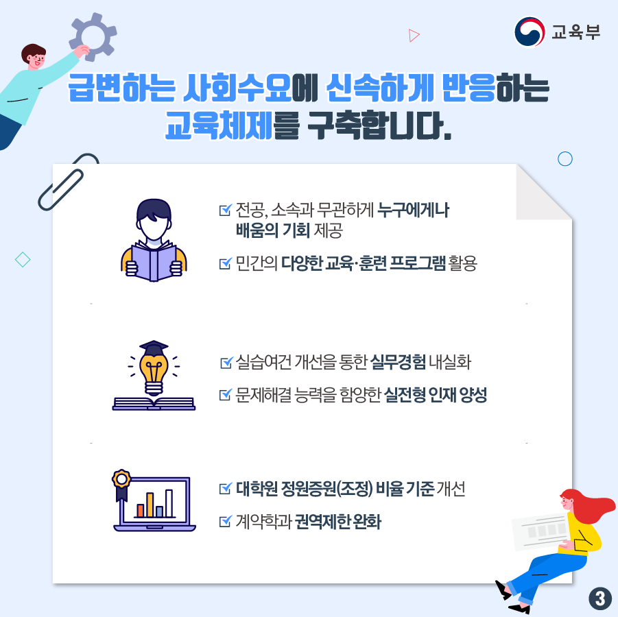 급변하는 사회수요에 신속하게 반응하는 교육체제를 구축합니다.