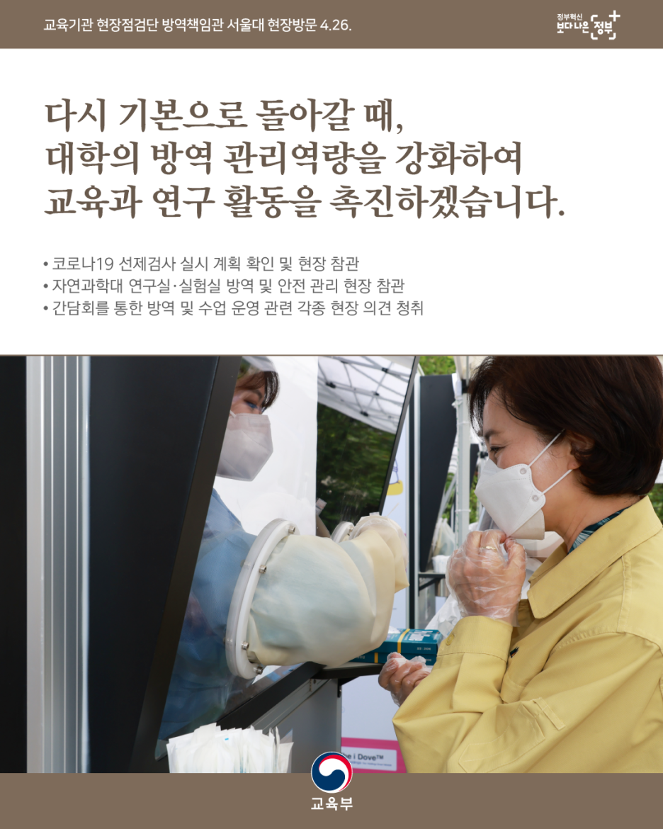 교육기관 현장점검단 방역책임관 서울대 현장방문 4.26. 본문