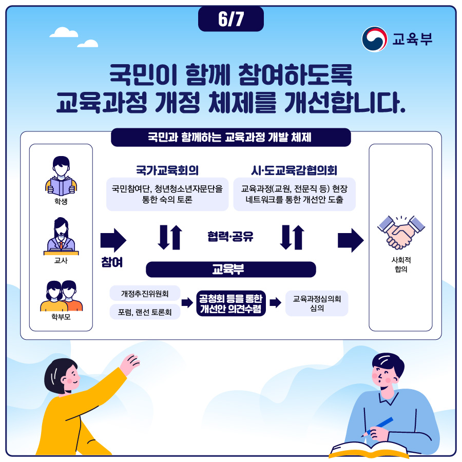 국민이 함께 참여하도록 교육과정 개정 체제를 개선합니다.