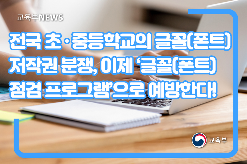 교육부(부총리 겸 교육부장관 유은혜), 한국교육학술정보원(원장 박혜자)은 초·중등학교의 글꼴(폰트)·저작권 분쟁을 예방하기 위하여 17개 시도교육청과 공동으로 ‘글꼴(폰트) 점검 프로그램’을 개발하여 배포한다.