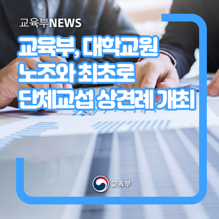 교육부(부총리 겸 교육부장관 유은혜)는 전국국공립대학교수노동조합(위원장 남중웅, 이하 ‘국교조’)과의 단체교섭을 위해 제1차 본교섭(상견례)을 5월 6일(목), 프레지던트 호텔(서울 중구 소재)에서 개최한다.