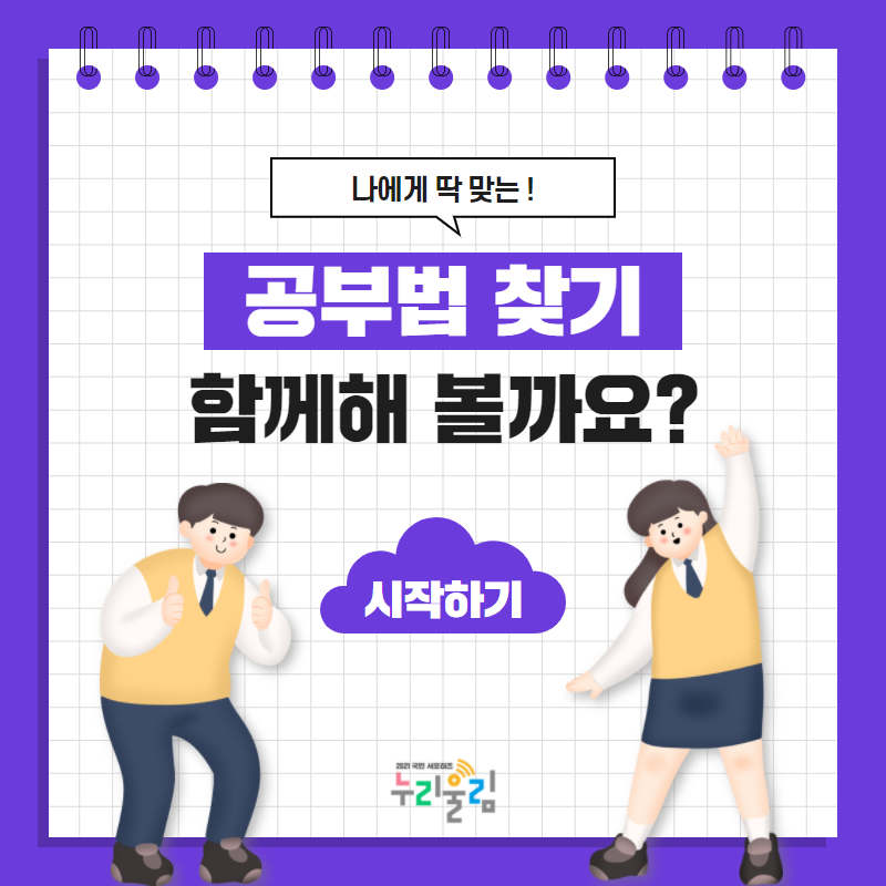 여러분은 ‘왜 열심히 하는데 결과가 안 따라줄까?’라는 고민을 하신 적이 있으신가요? 저는 몇 년 전 이런 고민을 거치며 많은 공부법을 적용하며 공부하곤 했는데요. 유대인들의 공부법이라는 ‘하브루타’, 자신이 무엇을 알고 모르는지 알아가는 ‘메타인지’, 아무것도 없는 백지에 내가 아는 것들을 적어가는 ‘백지 공부’ 등등 시행착오를 많이 겪어가며 각각의 공부법의 장점과 어떤 과목과 어떤 공부법이 어울리는지 알 수 있었답니다. 오늘은 자신에게 딱 맞는 공부법을 찾을 수 있도록 저의 경험을 바탕으로 다양한 공부법을 소개해드릴게요! 함께 ‘나에게 딱 맞는 공부법’을 찾아보아요!