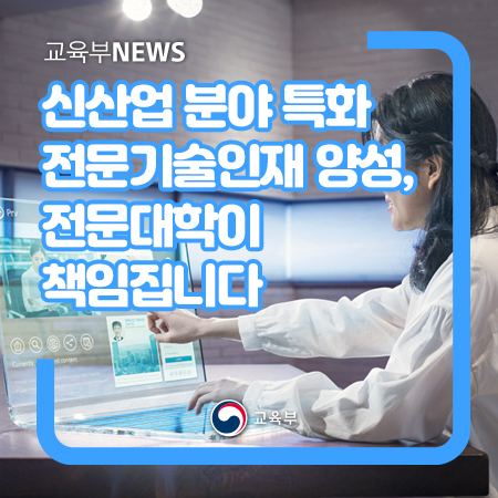 교육부(부총리 겸 교육부장관 유은혜)와 한국연구재단(이사장 노정혜)은 올해 새롭게 추진하는 ‘신산업 분야 특화 선도전문대학 지원사업’ 선정결과를 발표하였다.