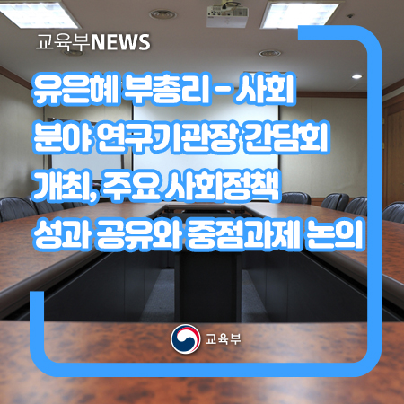 유은혜 부총리 겸 교육부장관은 5월 12일(수), 정부세종청사에서 사회정책 분야 7개 연구기관장*과 간담회를 개최한다.