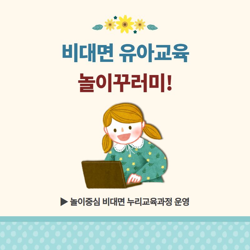 코로나19 확산 상황에 따라 유아의 안전과 학습권 보장을 위해 유치원에서도 비대면 원격수업이 운영되고 있습니다. 유치원 원격수업은 유아의 발달 특성을 고려하여 실물자료 중심의 놀이꾸러미, EBS 1TV <우리집 유치원> 방송, 각종 온라인 콘텐츠 등을 활용하여 이루어지고 있습니다. 특히, 놀이꾸러미를 활용한 원격수업이 주를 이루고 있습니다. 놀이꾸러미는 유치원에서 가정으로 배부되는 놀이가 담긴 꾸러미로, 유아가 집에서 주어진 자료를 가지고 창의적으로 놀이하거나 가정에서 흔히 구할 수 있는 다른 자료와 상상을 더해 다양한 놀이를 하도록 격려하는 활동입니다. 제 친구도 놀이꾸러미를 이용해 유치원 원격수업에 참여했다고 하는데요. 놀이 중심이라 부모와 아이들의 반응이 좋다고 합니다. 또한 교육부에서는 시도교육청과 협력하여 누리과정 포털(i-누리)에 다양한 원격수업 자료와 학부모지원 자료를 탑재하고 있다고 하니 참고하시면 좋을 것 같습니다.